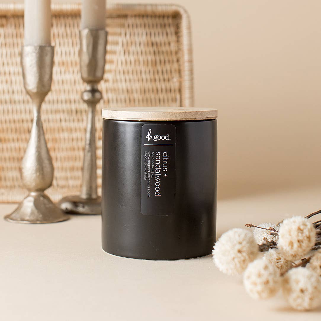 Citrus + Sandalwood | Soy Candle Black Ceramic - 12 oz