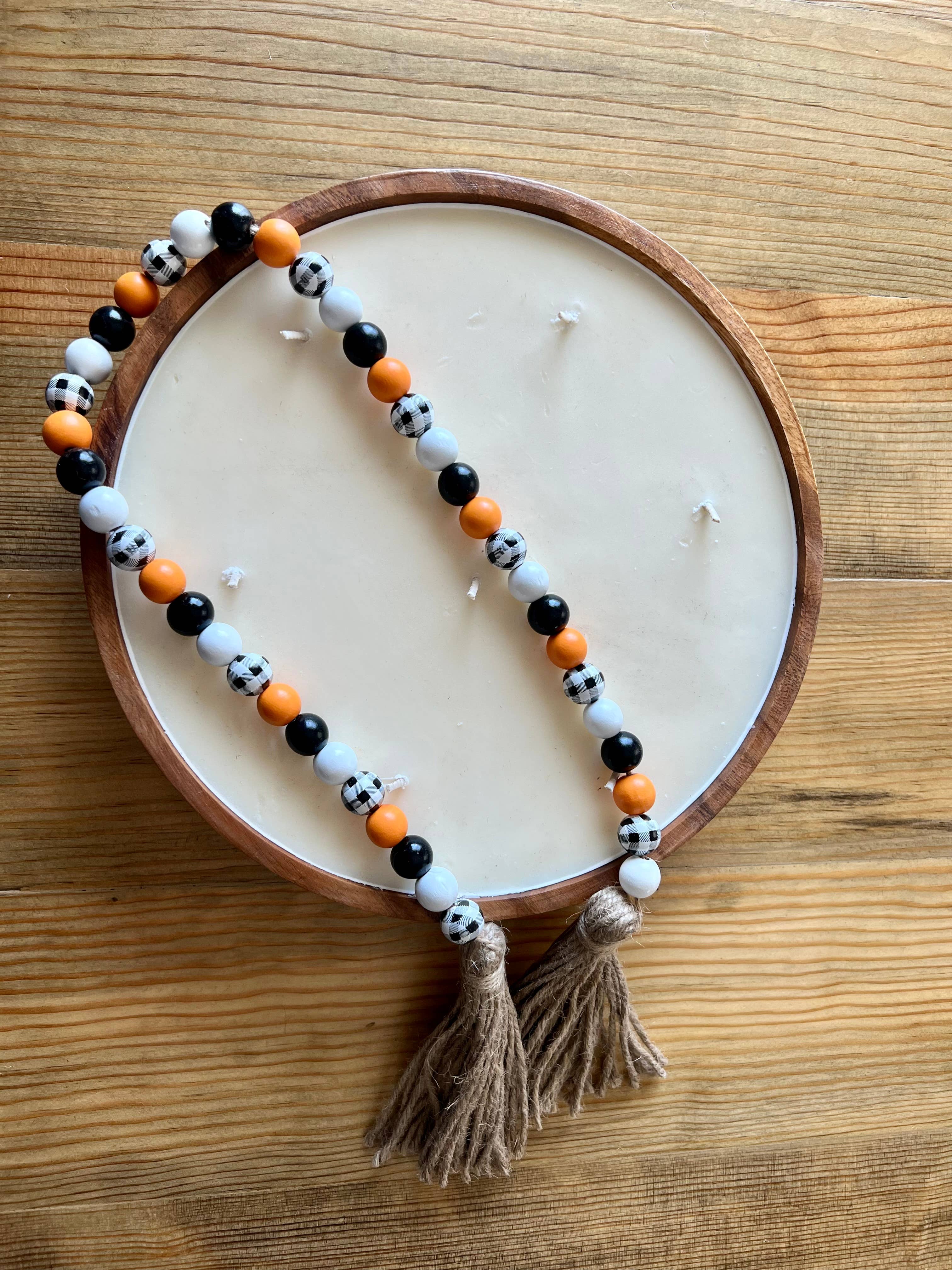 Enhance your autumn ambiance with our beautiful wood bead garlands! Perfect for any space, these garlands add a splash of seasonal color and serve as stylish fillers for your favorite nooks. Each one features an uplifting quote to bring a touch of inspiration and warmth to your fall decor. Product Details: Length: Approximately 34 inches dependent on pattern. Bead sizes vary between 16mm, 20mm, and 25mm