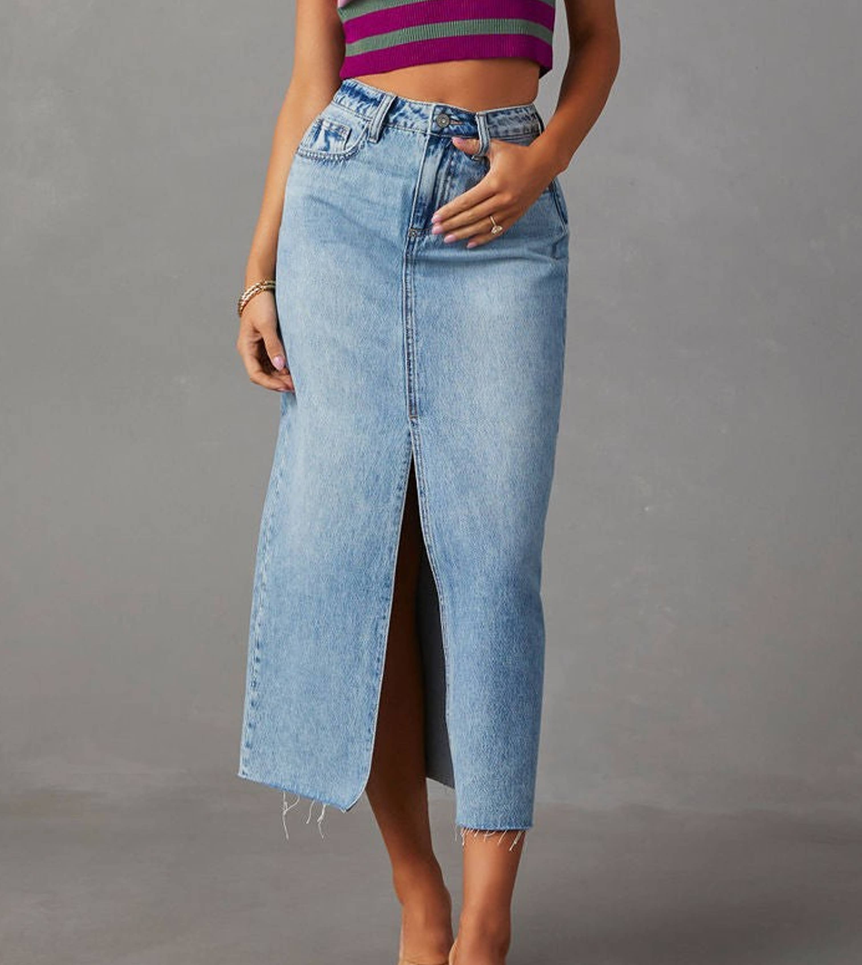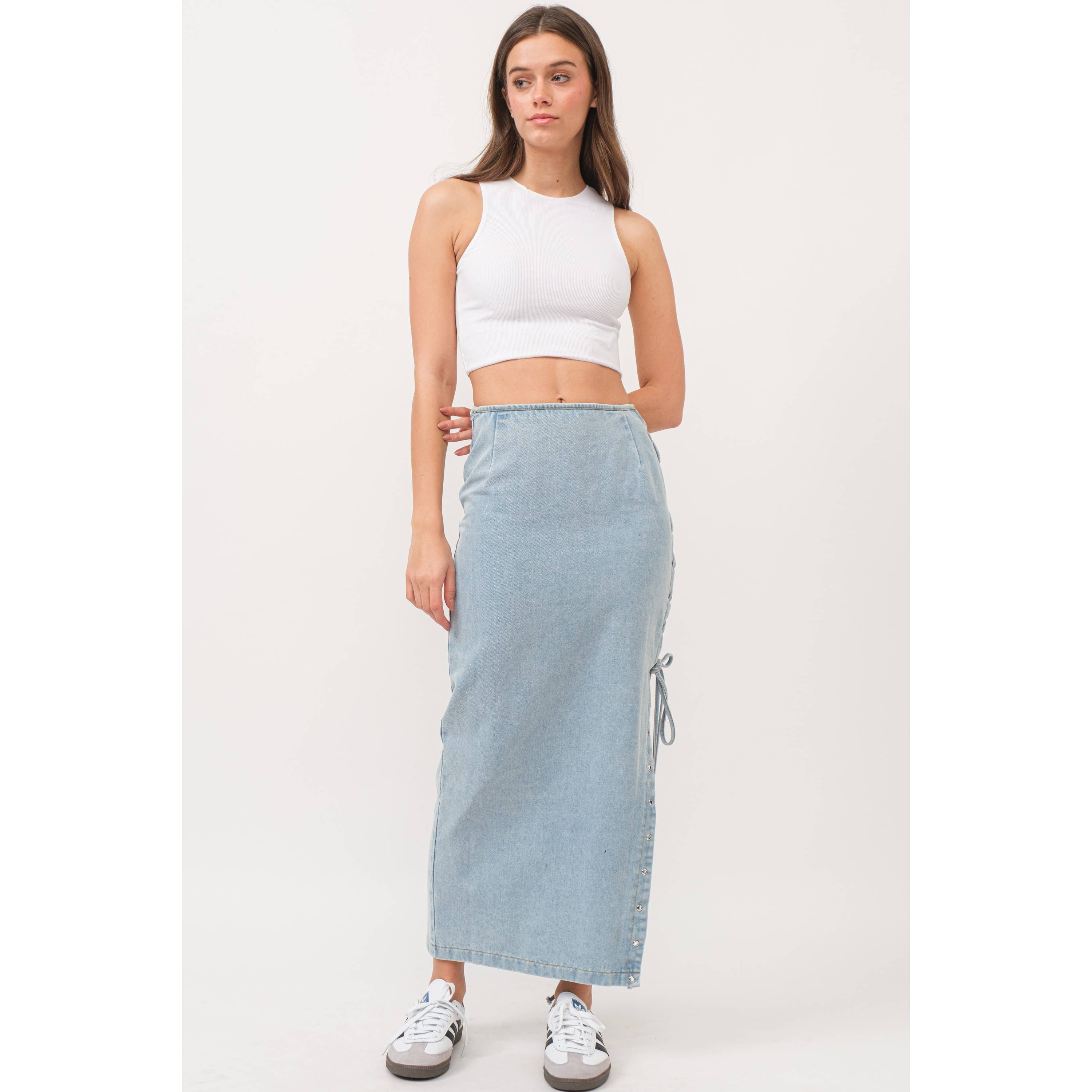 Denim Cargo Full Long Skirt