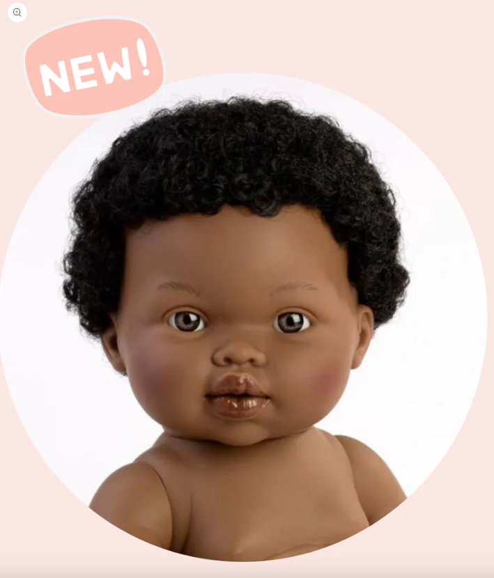 Introducing Mini Colettos, a diverse line of anatomically correct newborn dolls, artisan-made in Spain with thoughtfulness, care and exceptional attention to detail. Playing with dolls and doll accessories is proven to help children develop empathy and compassion, and can help them exercise fine motor skills. Isabel is a female doll with straight brown hair and blue eyes. Product Details * Eco-friendly and non-toxic (phthalate-free) soft vinyl * Moveable head and limbs * Made in the town of Onil in Alicante, Spain * Anatomically correct * Recommended for ages 3+ * Height: 34 cm