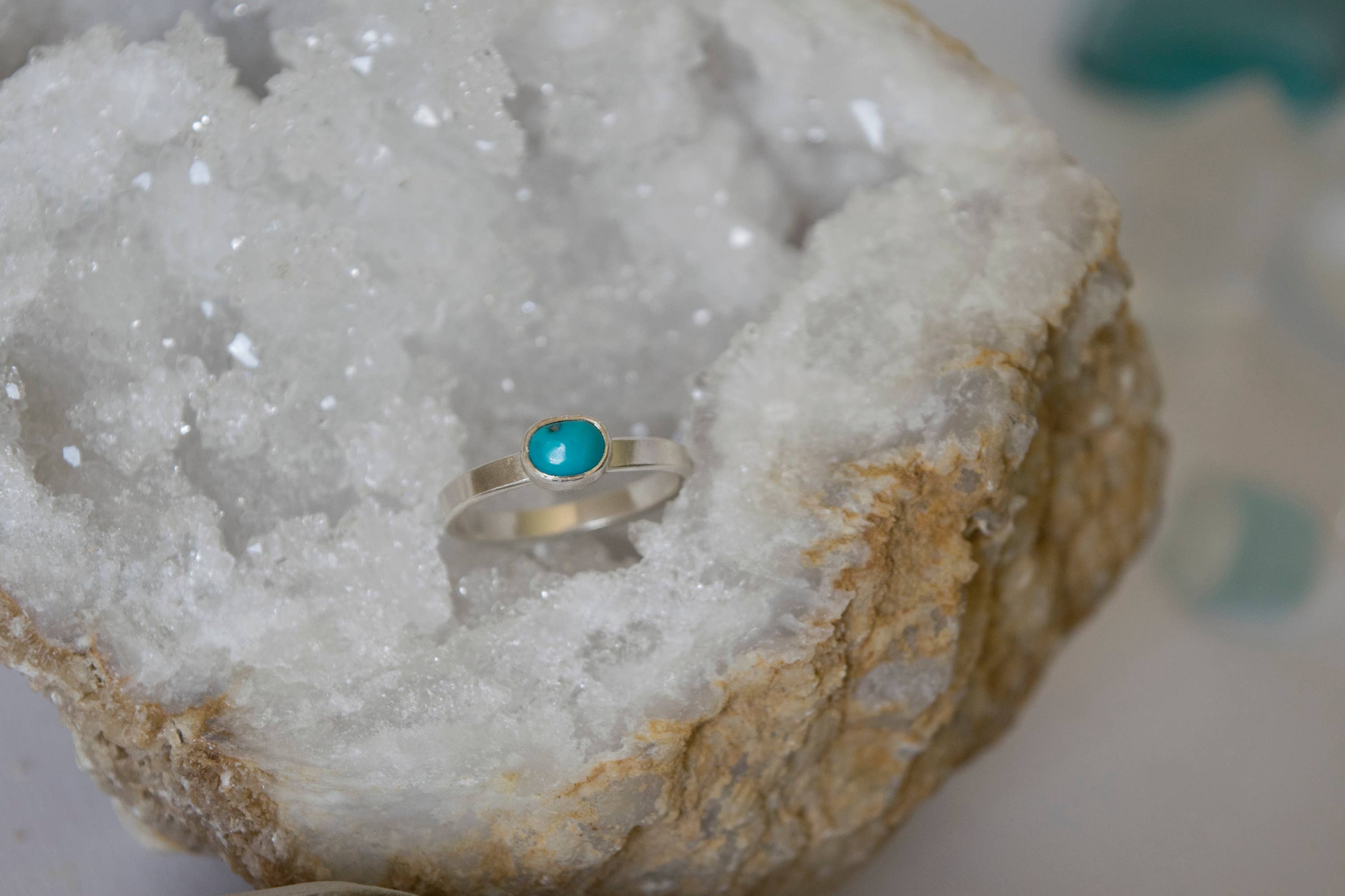 "?Sterling Silver and Natural Kingman Turquoise. Made in whole and half sizes between 4 and 12. Turquoise Approximately 10mm in Diameter.