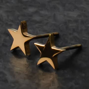 Michelle Chang - Wholesale Stud/Post Earrings - Mismatched Star Cutout Stud Earrings in 14k Gold