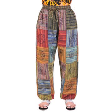 Catch the laid-back groove in our Blue Patchwork Pants, created from lightweight striped fabrics sewn together in soulful patchwork style. With a relaxed fit, three handy pockets, and a drawstring/elastic waist, these unisex patchwork pants bring comfort to beach days, travel, and everyday chill sessions. Each pair is one-of-a-kind with its own mix of shades. A longtime Soul Flower favorite, these hippie-inspired pants are made for dancing, dreaming, and wandering free. Ethically made in Nepal. 100% Lightweight Cotton. Blue Stripes.
