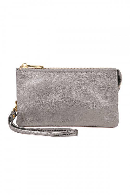 Get your essentials in a snap with this fold over cash and card wallet. Made from vegan leather with two card slots and a roomy cash pocket, this clutch-inspired mini is perfect for easily changing bags or popping in your pocket. -Fold over closure with goldtone snap -2 card slots + 1 cash pocket -Custom two-tone lining -6 styles: Wild One, Mai Tai, Take It Easy, Shattered, Sundrenched, Full Bloom -Reorder by style in packs of 4 -Peggable with custom wrap band -Coordinates with Kedzie Good Energy Interchangeable Bag Straps (KDZSTP3-U24)