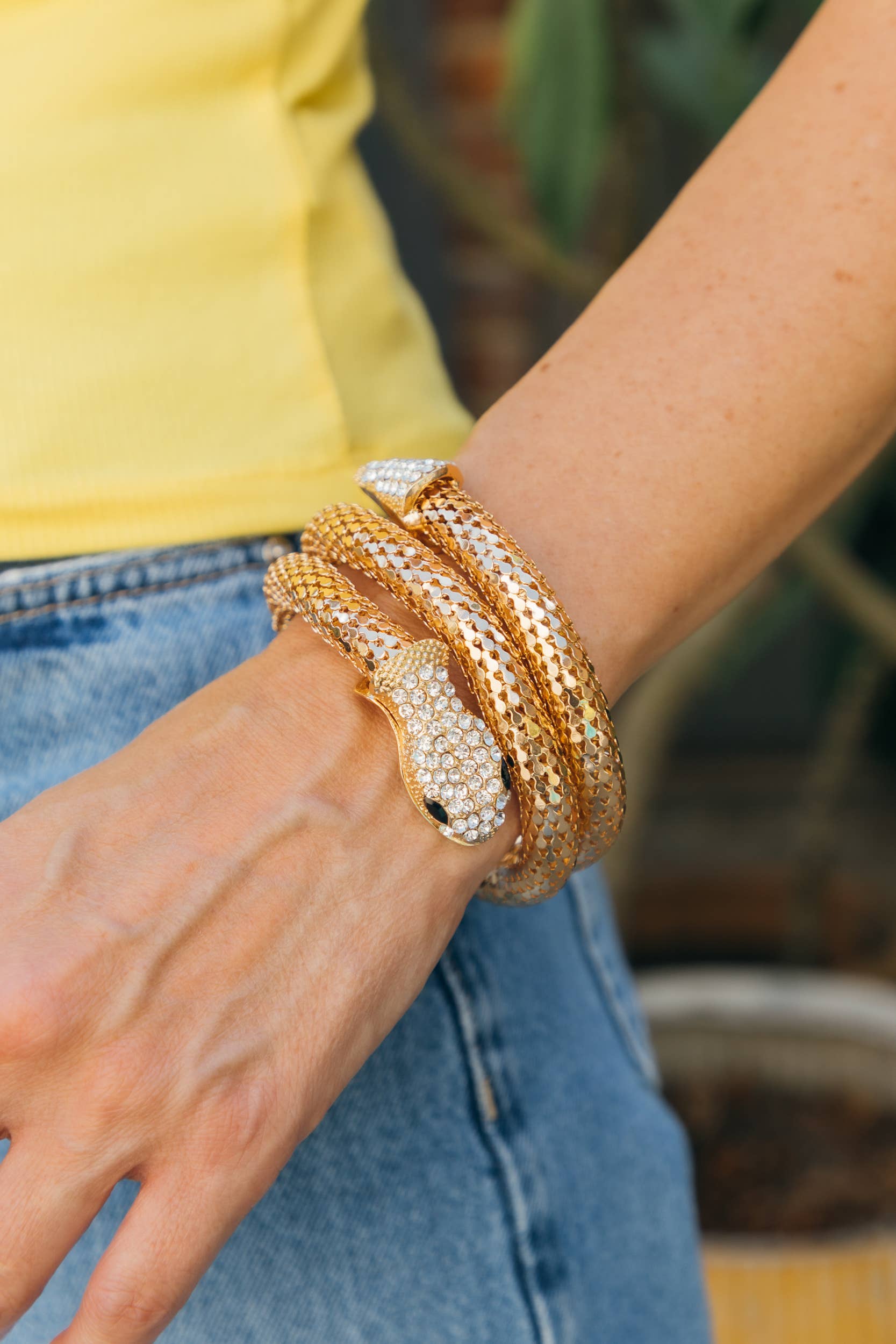 The Hinged Cuff Bangle is always a favourite for us. This Leaf Wraps Stainless Steel Jewelry. Waterproof. Non Tarnish. Lasts a lifetime We love a stack and especially one that looks so casually thrown together. This is steel Chain that is plated to last. Hypoallergenic, waterproof. Fits wrists of all sizes. extender can be cut at the right length. 4.5-10" plus Comfortable on the wrist as the twist is soft and moves.
