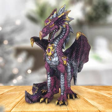 A fairy maiden rides atop her trusty dragon steed, as glowing crystals light their path. Color-change LED lights add special magic to this fanciful fairy-tale figurine.