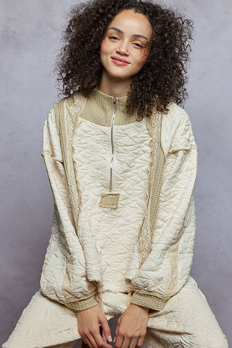 Cut Sew Multi Fabric Quilted Thermal Hoodie Jacket SALE