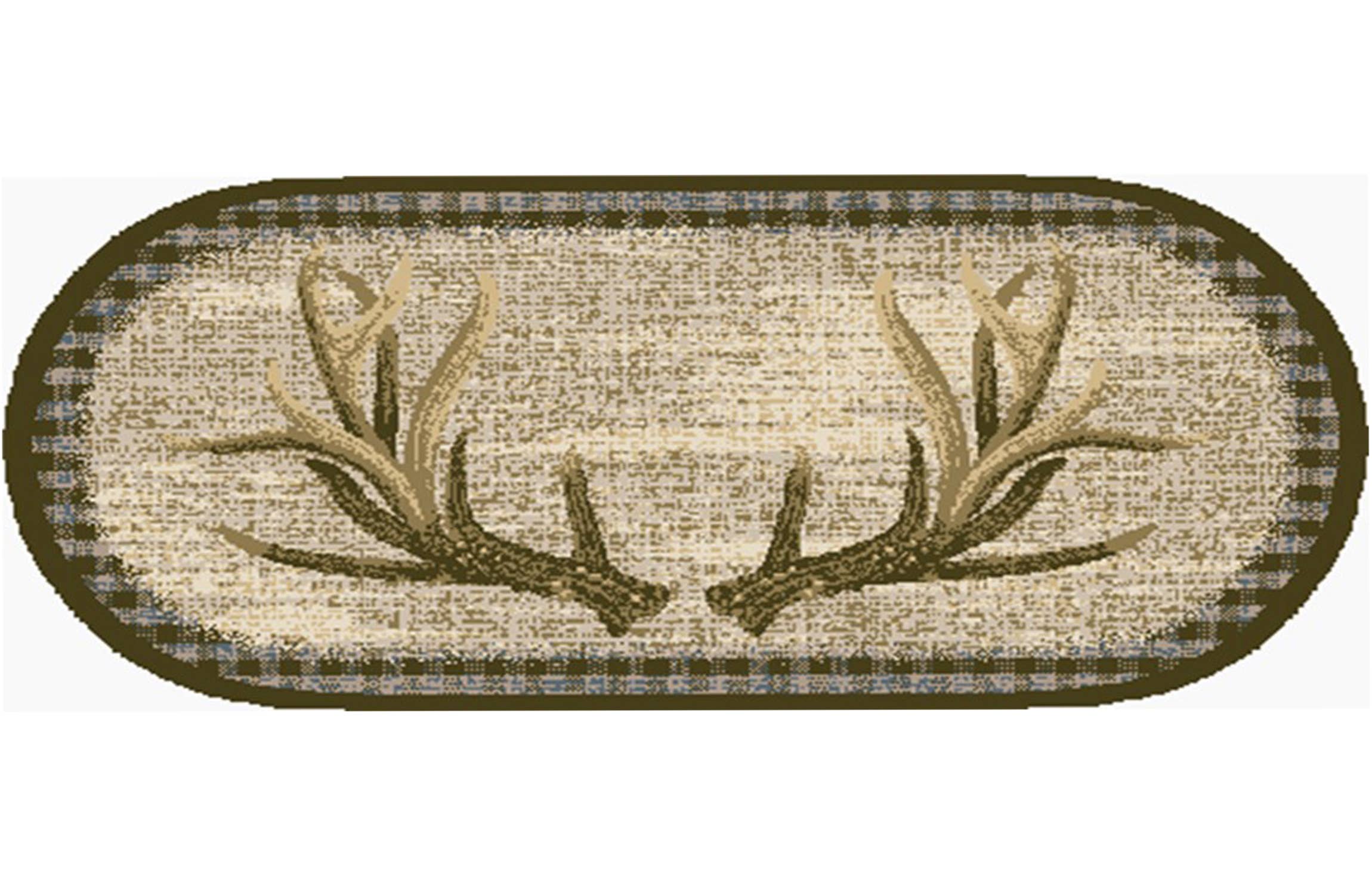 Cozy cabin neck of the woods printed nylon kitchen mat/rug. The cozy cabin collection offers small lodge mats with a non skid rubber backing. The face of the rug is printed nylon. It is perfect for kitchens, bathrooms, hardwood floors, and carpet. Made in america!