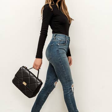 Unveil the epitome of style with our Vegan Leather Crossbody, showcasing a timeless diamond-quilted design and exquisite gold hardware. The turn-lock closure secures your belongings, and the fabric-lined interior with two separate compartments, a central zip pocket, and three card slots makes it a must-have accessory for any occasion. *Item Type: Crossbody *Material: Vegan Leather *Closure: Turn Lock *Exterior Details: Diamond Quilted Design, Gold Hardware, Detachable Chain Strap *Interior Details: Fabric Lined, 2 Separate Compartments, Center Zip Pocket, 3 Card Slots