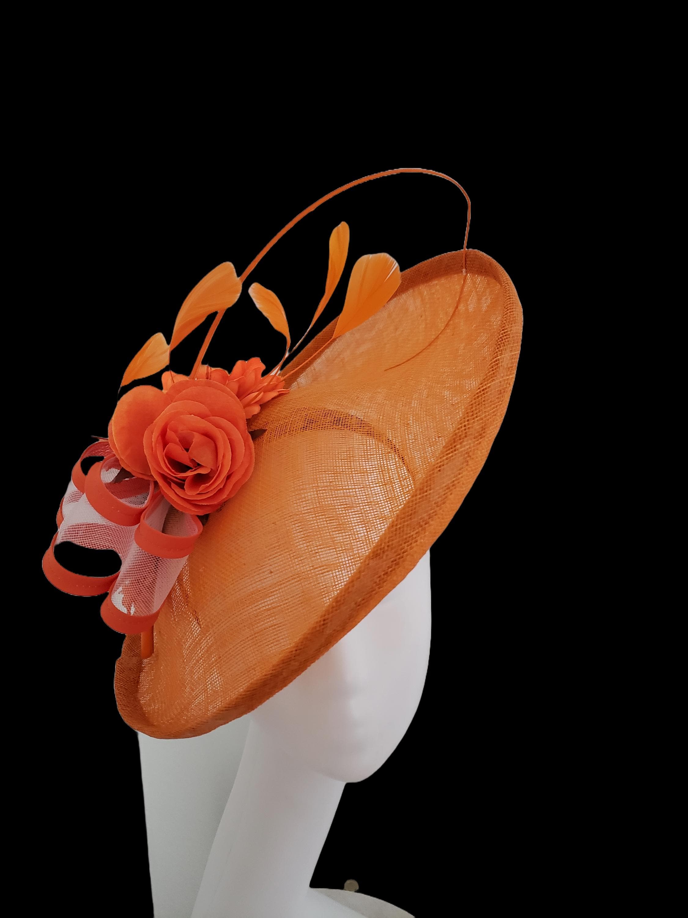 Monotone fanciful hat with large and soft brim, adorned with an elegant rose. This is the perfect accessory for church, a wedding, or your day out at the derby! Material: Sinamay Head Size: 22 1/2 inch Brim size: 7 inch Handmade Item. Item Ships from Cranford NJ, USA. Origin: Made in the Philippines Color on screen may vary from actual merchandise due to monitor restrictions or dye lots.