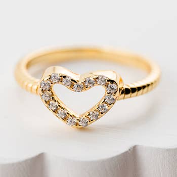 Our Hearty Heart Stacking Band features a tiny heart at the center of a slightly curved band with sprinkles of white topaz at each side. Minimal and elegant, this dainty ring dazzles on its own or can be layered with other pieces to create an astounding signature look. ✦ 14K yellow gold vermeil (14K yellow gold plated over a sterling silver base) ✦ Gemstone: 1.2-1.5 round White Topaz ✦ Band Width: 1.5mm ✦ Thickness: 1.2mm
