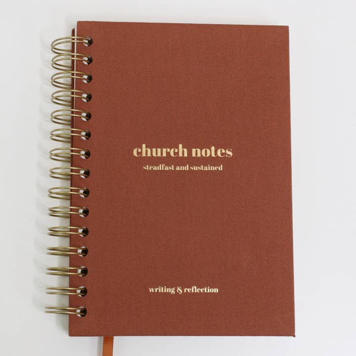 The Steadfast & Sustained church notes journal is structured to make taking notes easier. It features space to highlight key points and scripture references. There is open room for notes, and then reflection questions at the end to think and pray about the message. This allows the message to be applied to the following week, and remembered down the road! These pages can be utilized while taking notes during church, or while listening to a podcast or sermon message online. Two pages are set for each sermon, with reflection questions that change and then rotate every 4 days. 70 messages can be written in total, with 2 pages each. That's more than the 52 weeks in a year! Or fill it up faster by using as many pages as you want (the more notes the merrier!) Sections: Key Points Scripture Lines for Notes Reflection Questions Details: Spiral bound, hardcover, linen 148 pages 5.51 x 8.27” Thick, 110-lb no-bleed paper Grab the sermon notes journal for a Bible study, shop, church, etc.!