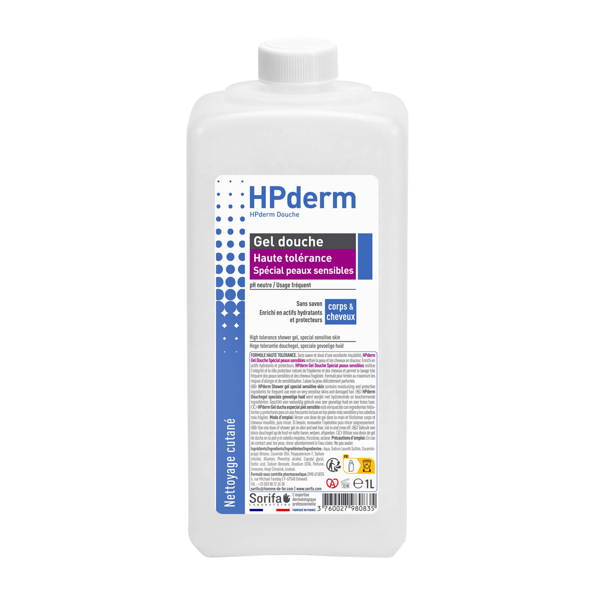 Laboratoire de l'Homme de Fer - SORIFA - Wholesale Body Wash/Shower Gel - Hyderm Vegetograin Cleansing Cream - FORCE 4 - 1L0