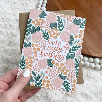 Send someone some beautiful hand painted watercolor flowers to brighten up their birthday. Watercolour art by artist Amy Thompson. Greeting card comes blank on the inside for you to write a personalized note. Printed locally on textured felt paper, Kraft envelope included. A2 size 4.25” x 5.5”.