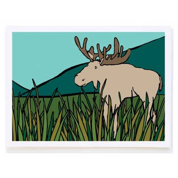 Moose is ready to bring the heat on the ice this winter. Are you ready for a little pond hockey? 4.25" x 5.5" blank cards with envelopes.