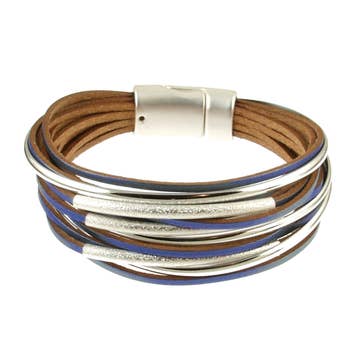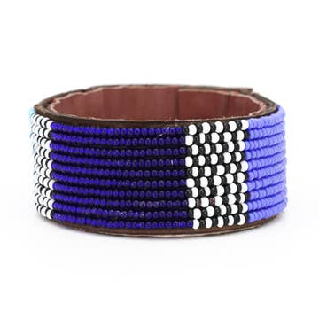 - 100% handmade by fairly paid artisans in our partner worker-owned co-op in Tanzania! - Crafted from free-range, natural leather and lined with soft suede. - Durable and adjustable. - Fastened by a button stud closure with three adjustable lengths. - Adjustable between 7"-8" in length - Three widths available in all styles: Small(.5 inch), medium (1 inch), large(1.5 inches). - Items are all handmade, so there is some variation in leather texture/color. Each cuff comes with a story card with artisan photos and information. A free wooden cuff rack is included with orders of 6 cuff collections or $400 of cuffs!