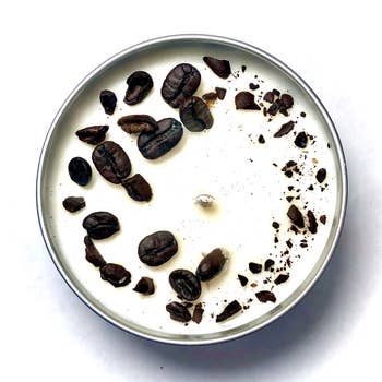 Notes of coffee bean, milk, cream and vanilla Our candles are made with a custom soy wax blend, phthalate-free fragrance oils and two lead-free cotton wicks. Approx. 25 hour burn time. Comes with a black metal lid. Item details: -6 oz. Net Weight (8 oz. tin) -Height: 2" -Width: 3" -Weight Per Candle: 8 oz. (approx.) Candle Care: Trimming wicks to 1/4" before each and every burn reduces soot and increases the lifespan of the candle by allowing it to burn cooler and slower. All products are made to order and we do our best to get your order made and shipped out as quickly as possible!