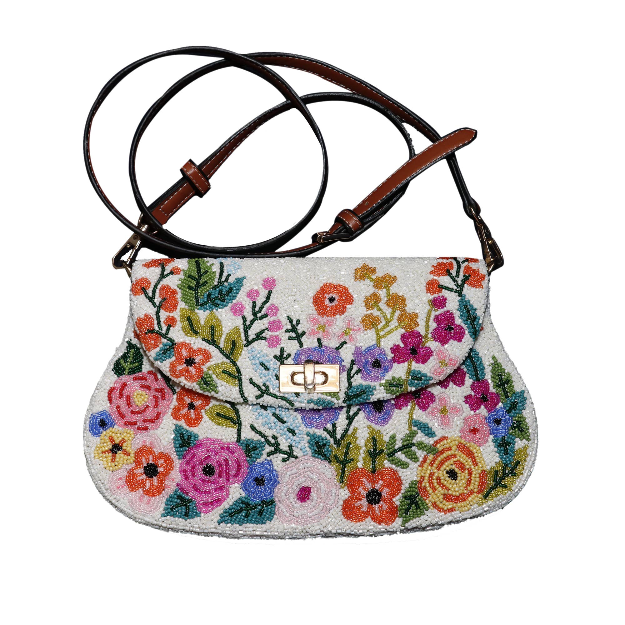 Fully beaded shoulder bag with beaded strap. Available in 5 colors. SS 633