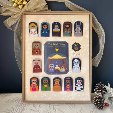 Nativity Story Pack of 4 - Organic Cotton Finger Puppets - Christmas Gift