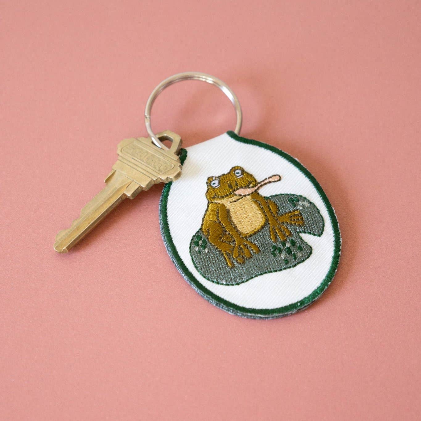 Show your keys some love with one of our patch keychains. Super cute and eye-catching, our double-sided embroidered keychain designs range from flowers and fruits to birds and bicycles - which makes me think we pretty much got it all covered. Made with high-quality materials for a durable, long-lasting accessory. "Frog" Retro Inspired Great gift Your new favorite accessory Embroidered Natural Cotton Patch Keychain Double-Sided Embroidery Metal Split Keyring. 2.5" x 1.8" Quick Ship
