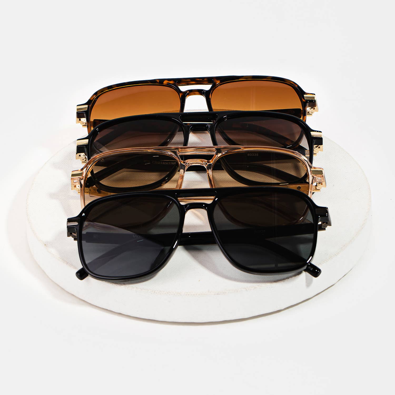 These retro-inspired aviator sunglasses feature a stylish double bridge, lightweight metal arms, and bold gradient lenses. Designed for comfort and all-day wear, the wide frame adds vintage flair while delivering a fresh, fashion-forward silhouette. Frame Material: Plastic & Metal Lens Material: PC Frame Width: 150mm Lens Width: 61mm Lens Height: 53mm Bridge Width: 15mm Temple Length: 140mm 100% UVA & UVB Protection One size fits most One dozen assorted/mixed colors Color count is not even and may vary