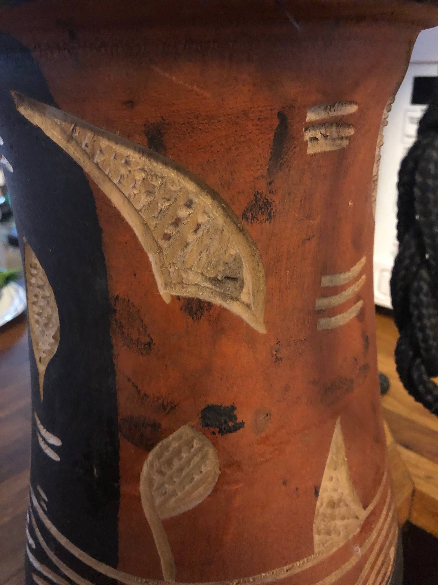 Drumming is an ancient skill and individual or community activity important for guiding and signaling. The act of drumming can be therapeutic, expressive, gathering, dispersing, meditative, celebratory and more. This traditional drum is made of a hand carved wood base with kente or painted embellishments and goat hide heads. Each drum is unique - please expect any combination of carving/dye. or other embellishments. Professional grade. Made in Ghana. Phase 4: 4" across, approx. 7" tall Phase 9: 9" across, approx. 20" tall Phase 11: 11" across, approx. 22" tall Phase 13: 13" across, approx. 24" tall