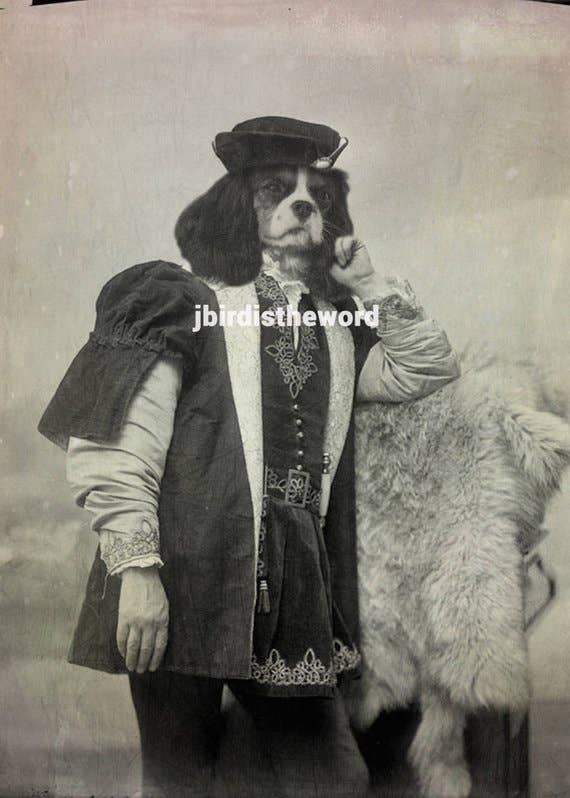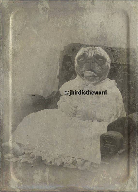 Unique art to please the unique characters in us all! These Matte prints are archival and superb in quality and acid free. Artwork has the same quality as a real photograph. Here are some great ideas to display/give your custom artwork: ** Hang it in your foyer as guests come into your home. ** Sneak it among your family portraits and watch your friends reaction. ** Give as a gift and watch the recipient giggle uncontrollably! I guarantee they will last over 200 years when taken care of. Prints come in a clear bag with board backing to ensure longevity. I combine real antique photographs with photographs of pets and wild animals to create cute and sometimes creepy artwork guaranteed to spark a conversation and reaction! I use Photoshop to digitally paint the images together and add textures that I have photographed for an extra vintage feel.