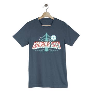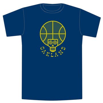 Show your Bay Area spirit in this royal blue tee with a bold gold "GOLDEN STATE" graphic. The front features a stylized bridge, basketball, and waves for classic California energy. Perfect for hoops fans and city lovers, it adds a playful pop to any look. Fit Men fits true to size. Women size down. Drapes, flows, stretches and recovers. Great for activity or working out. Fabric Lightweight, soft, silky, and stretchy. 4.3 oz. 50% polyester, 25% ringspun cotton, 25% rayon