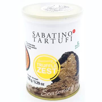 Truffle zest & cheese seasoning blends the award-winning truffle zest, a powdered seasoning of black summer truffles, with grated pecorino cheese. Sprinkle onto french fries, popcorn, pasta, pizza, salad, eggs, rice, vegetables and soups. 2.11 oz.