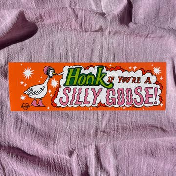 Honk if you're a silly goose! 3" x 9" vinyl bumper sticker. Great for your bumper, your laptop, and even a very big water bottle!