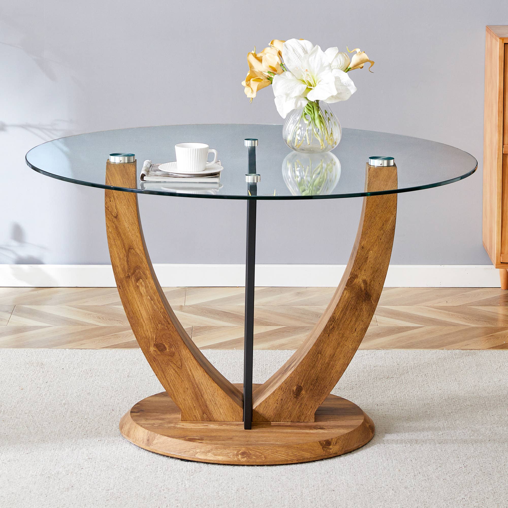 Add a touch of elegance to your living room with these beautiful round coffee tables. Crafted from high-quality metal and MDF tabletop material, these tables come in a stunning brown color that will complement any decor. The tables are 17.5 inches high, 31.5 inches long, and 31.5 inches wide, making them the perfect size for any room. The round shape adds a unique touch to your space, while the metal handles provide a sturdy grip. Perfect for holding your coffee cups, books, and magazines, these tables are a must-have for any coffee lover.