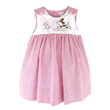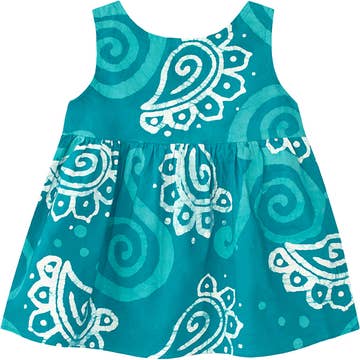 The Carousel Dress is a vibrant swirl of contrast fabrics that scream fun! It's not just a dress; it's a playful statement piece that's ready for all that summer has to offer. Sleeveless Two panel gathered skirt 100% organic cotton
