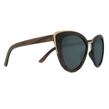 Our Cateye design is timeless and vintage-inspired. Elevate your look to new heights and have fun doing it. These feline frames are set in ebony wood with rosé mirrored polarized lenses. The Cateye look good on a variety of face shapes and will give an lifting effect to your face. Meow!