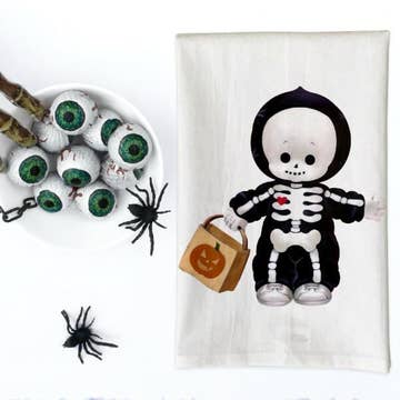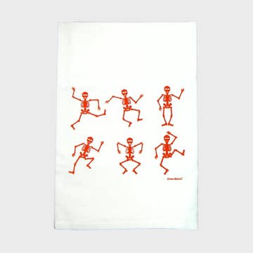 This 'Dancing Skeletons Halloween Flour Sack' tea towel is a low maintenance tea towel for high maintenance messes. Our tea towels are: *100% cotton *Handprinted in Missouri *Printed with durable specialty inks *Pre-washed and shrinked *Approx 28" x 28" *White with a hanging loop Green Bee Tea Towels was founded by Rena in 2015 to provide products that are not only fun and beautiful but that are also functional and durable. Our tea towels require no special care, the care instructions are as follows: *Machine wash - warm water *Tumble dry - low *Iron & bleach optional Due to the handmade nature of our tea towels, each will have slight variations in size, texture and image placement. People also search: Dish Towel, Dish Cloth, The Gift Company Shop, Cool Gifts For People That Have Everything, Branded Thank You Gifts, Gift Reps, Fall Decor, Halloween, Pumpkin, Fall Wreath Perfect for: Homeware, Giftware, Designer Tea Towels, Usa Gifts, Gifts Decor, Made In Usa Gifts, Holiday Gift Store, Halloween 2025, Autumn, Fall 2025, Deco