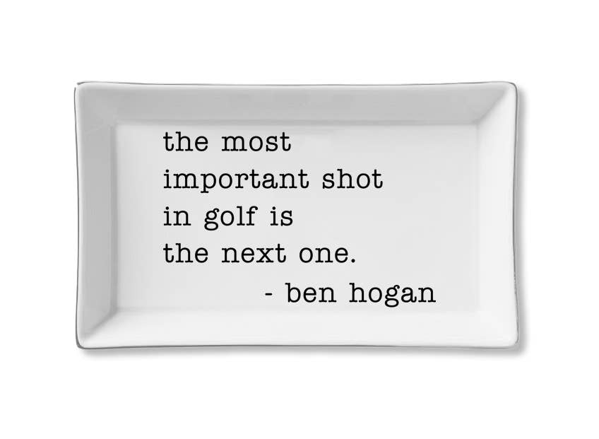 Golf has always been part science, part poetry—the rhythm of a swing, the patience of the stance, the endless inner dialogue whispering focus, balance, breathe. Our Golf Sketch Swing The Club Decoupage Glass Tray captures that meditative chaos with charm, humor, and a distinctly human touch. Handcrafted in our New York studio in the French tradition of decoupage, each bent-glass tray is layered with Ben’s own illustration, a tangle of golf wisdom and scribbled reminders that feel both intimate and universal. No two trays are ever exactly alike, each one signed by Ben, turning a practical object into a keepsake. Felted on the back, food safe, and wipe clean, it’s as useful as it is collectible—perfect for serving a round of cocktails, holding loose tees and cufflinks, or standing proudly as art in your home. It isn’t just a tray—it’s a quiet nod to the pursuit of mastery, the joy of ritual, and the simple act of showing up, club in hand, again and again. Style#: DPI-1049