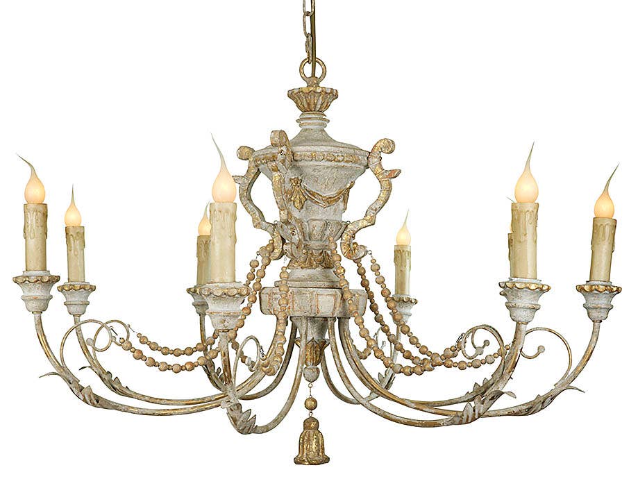 UL CERTIFIED. H 17.5" x W 15" Direct Connect. Chain adjustable up to 24 inches, 4.8 lbs total weight. This gorgeous acrylic crystal-beaded Gypsy Chandelier adds a touch of high design and baroque class to any interior. Ideal for those who want to make a dramatic statement in any space! Uses 4x40 watt - E12 chandelier bulbs (not included). ARMS FOLD FLAT for easy shipping and storage and to reduce the risk of damage, simply unfold, connect a few beads, and it is ready to hang!