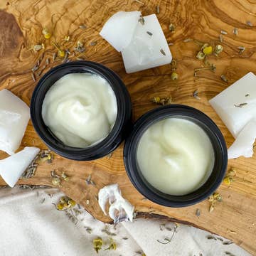 SKU: BBLAV01 Made in United States Fragrance Notes: Frankincense and Lavender Ingredient Preferences: Paraben-Free and Phthalate-Free Ingredients: natural raw cocoa butter, unrefined shea butter, jojoba oil, coconut oil, grapeseed oil, lavender oil, frankincense oil Weight: 113.4 g (4 oz)