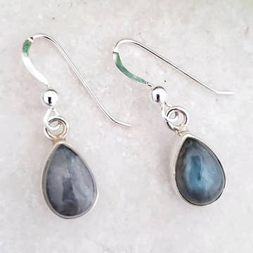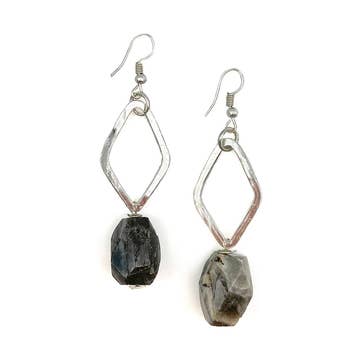 The ANKICA Reticulated Goddess Geode Earrings in Smoky Grey - for the goddess who is unapologetically themselves. Specifications: - Recycled sterling silver and 14k gold filled - Fused and reticulated sterling detail - Signature wire wrapped geode interior - Natural Smoky grey quartz and labradorite gemstones - Hammered texture, oxidized finish - Each piece within the Ankica collection is entirely one of a kind Sizing: - Measure 1 3/4" in length - Handmade gold filled ear wires 20 gauge Packaging: - Rubber backs included - Included hole punch earring cards - Hang tags available upon request Our ANKICA collection features freeform elongated stone-inspired silhouette framing our signature wire wrapped geode cluster. Each stone is forged by hand, soldered, shaped, hammered and oxidized (if sterling silver). Reticulated silver accents create an earthy and rustic juxtaposition to the sparkly geode interior. A selection of gemstones are curated for each unique freeform shape to fit the space in the most organic way. Each creation within the Ankica Collection is a one of a kind. In an effort to remain eco-friendly and sustainable, all of our jewelry is made to order unless otherwise marked as "ready to ship." By nature of handcrafted jewelry, there may be slight variations between each piece, but this will only add to the organic beauty of your jewelry.