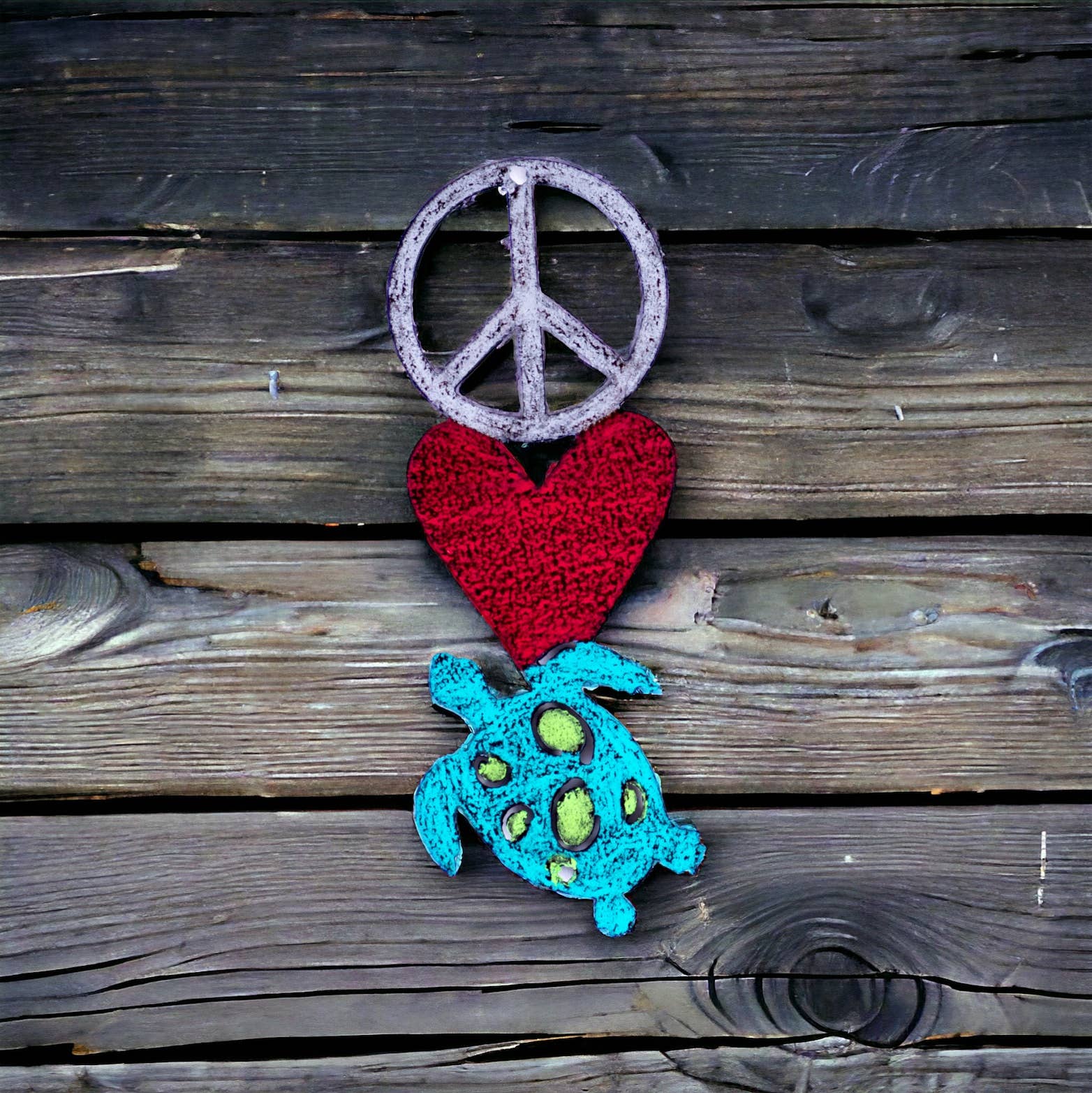 Our large Peace Love turtle magnets in assorted colors are a customer favorite. These are 5.5" tall. Made with recycled metals and made the the USA.