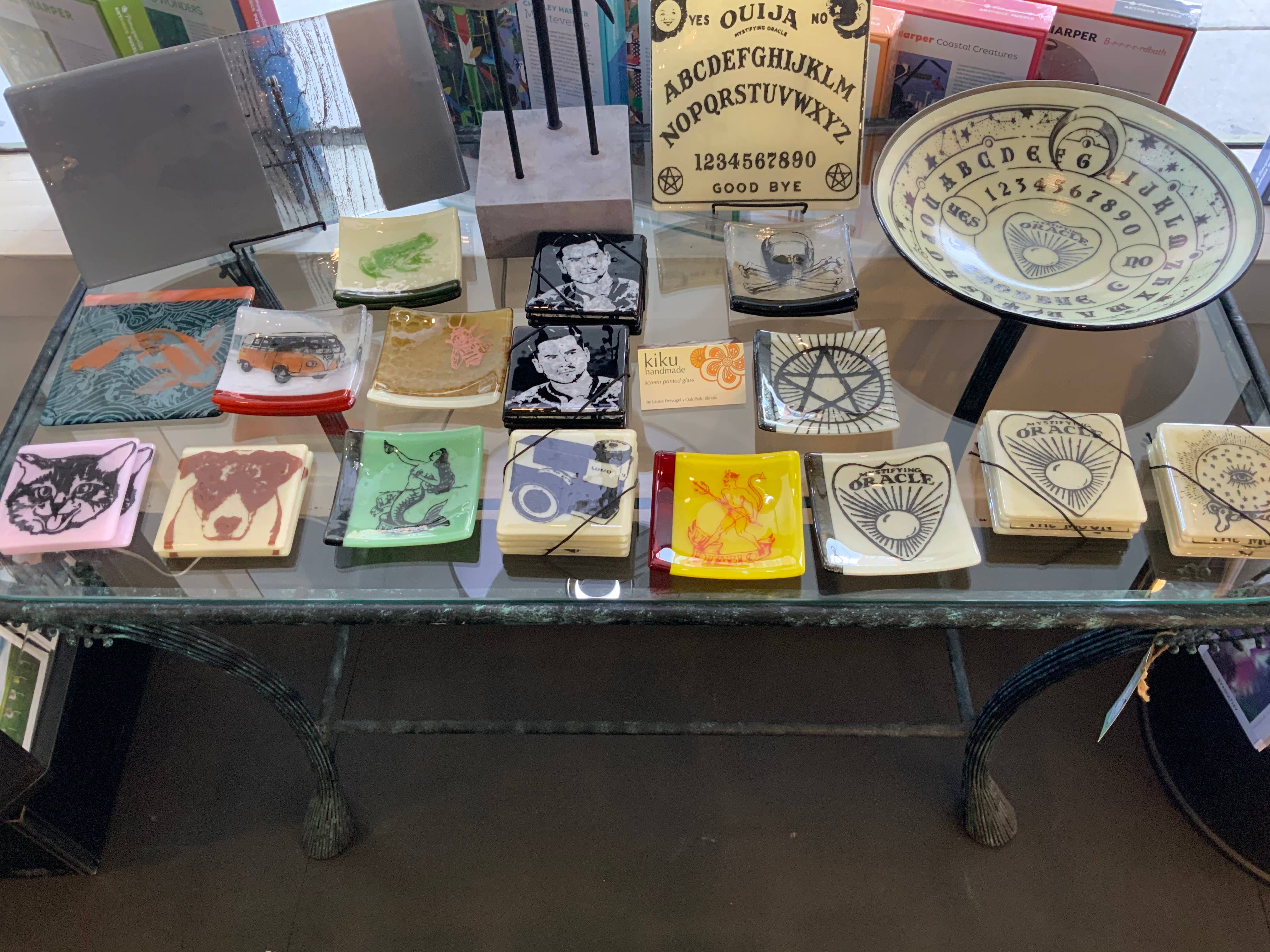 Unique pieces made very well. I especially like the ouija stuff and the Schitt’s Creek coasters.