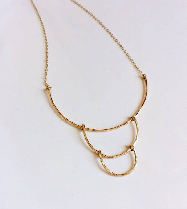 This beautiful organic necklace is extremely flattering on. Inspired by the branches of a tree, I hand forged 14kt goldfill or sterling silver wire and hammered them with a dappled texture to catch the light. The branches are approximately 3" long and total necklace length is 17". The chain is a fine but sturdy cable chain and it's finished with a spring ring clasp and my signature large end ring.