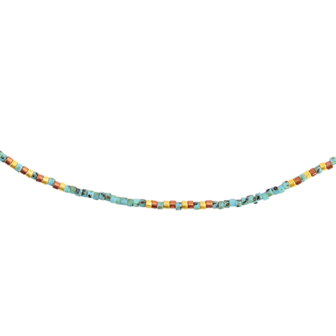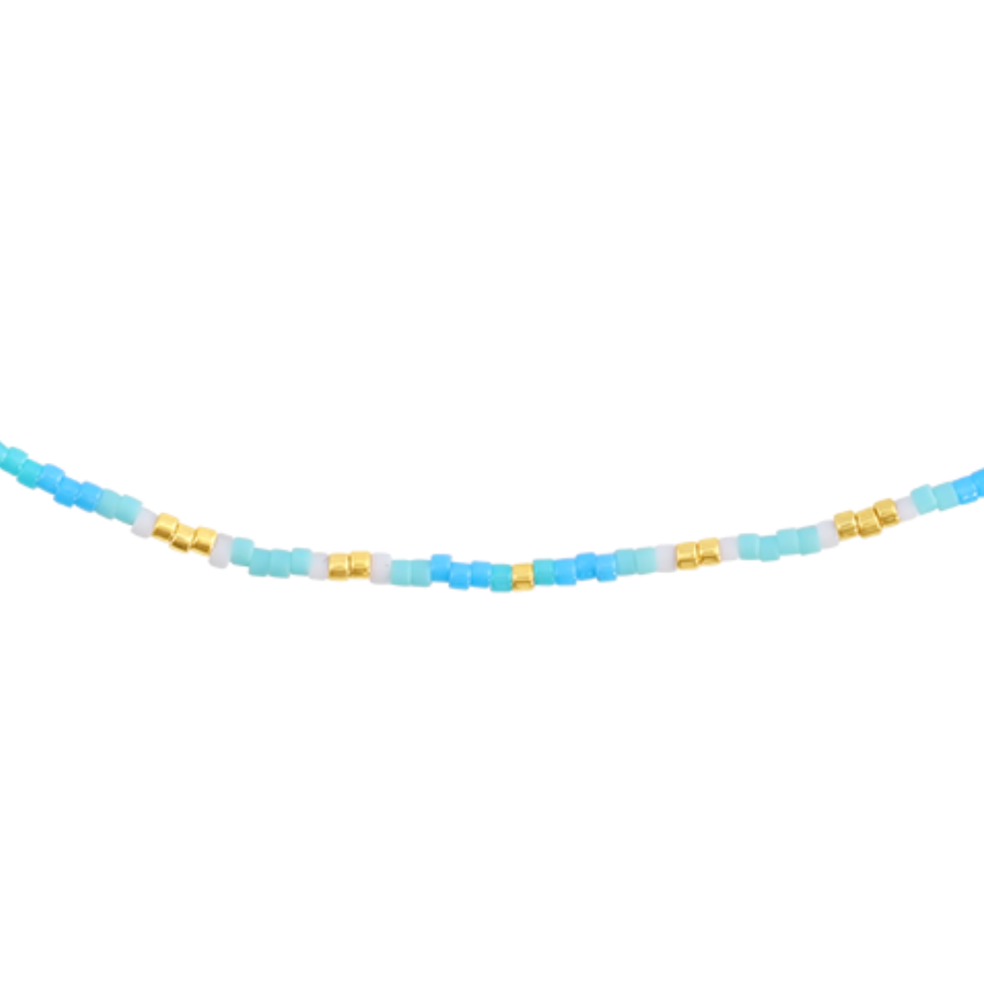 Dive into Elegance with our Saltwater Beaded Necklace! For surf shops and beach-inspired boutiques, this Saltwater Beaded Necklace, adorned with beautiful blue beads, is a unique addition to your collection. 🌊 Key Features: Explore more ⤵️ ✨ Handcrafted with Care: Meticulously crafted, this necklace captures the serenity of the saltwater and the tranquility of the sea. 💰 Unbeatable Value: Experience remarkable craftsmanship at an exceptional price, ensuring accessibility for all ocean enthusiasts. 🌼 Versatile Elegance: Its adjustable length makes it perfect for layering 🚨 Get the Set: Check out our matching bracelet to complete the look. * Material: multicolored beads * Beads size: approximately 1.7x1.6mm * Chain length: 16"-18" adjustable chain (40-45cm) * Chain extension material: yellow gold plated stainless steel and copper * Closure: lobster claw * Style: layering necklace, colored beads, beaded necklace, surf jewelry, beach vibes.