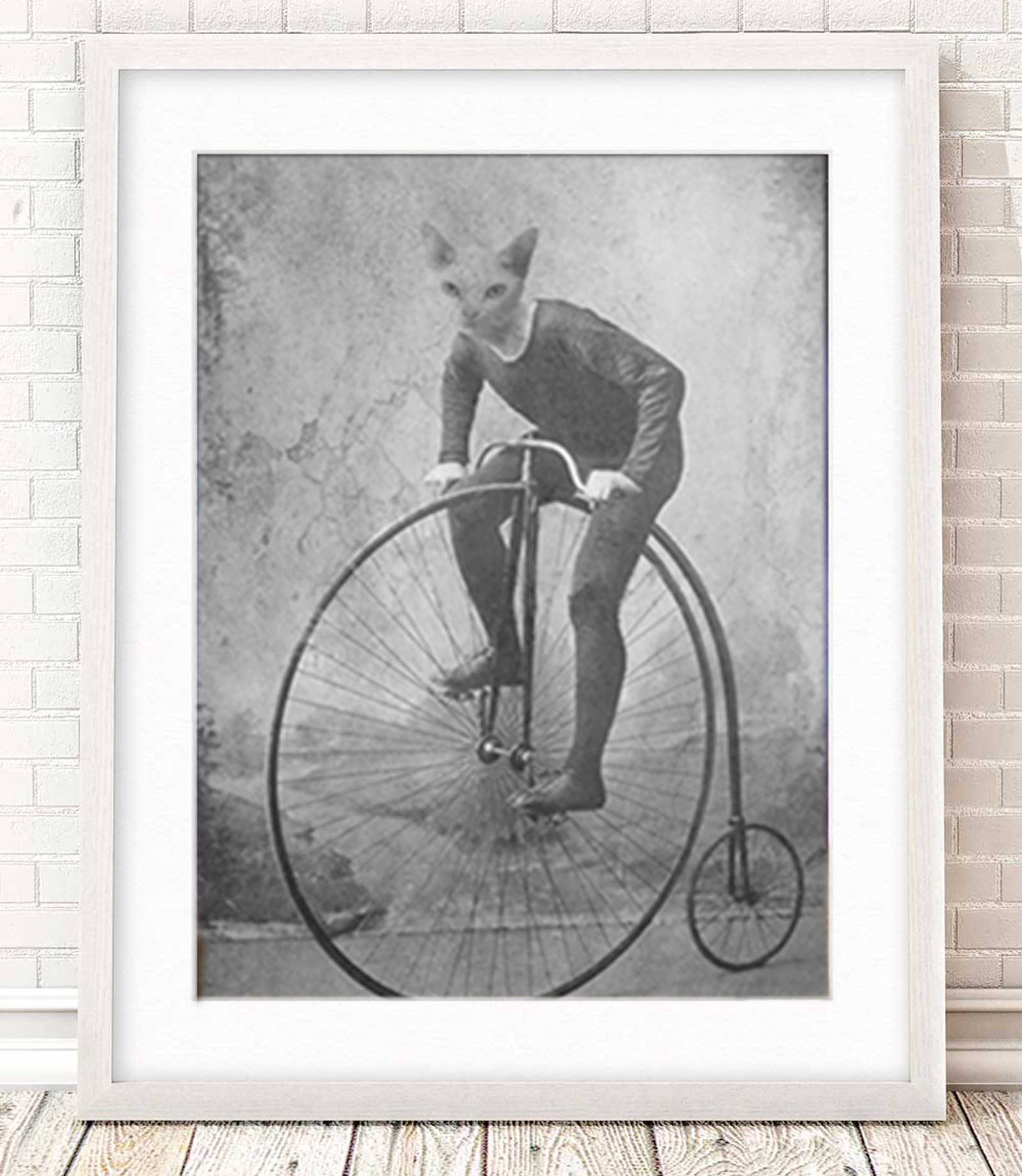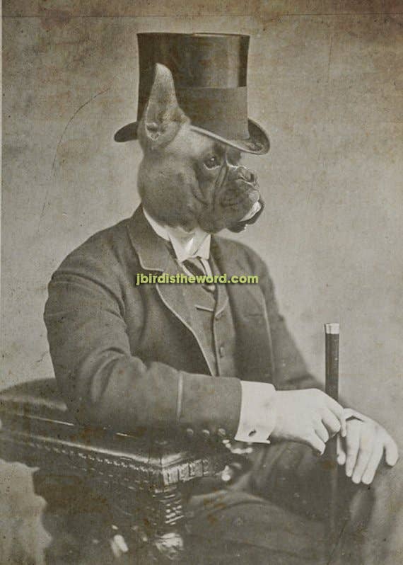 Unique art to please the unique characters in us all! These Matte prints are archival and superb in quality and acid free. Artwork has the same quality as a real photograph. Here are some great ideas to display/give your custom artwork: ** Hang it in your foyer as guests come into your home. ** Sneak it among your family portraits and watch your friends reaction. ** Give as a gift and watch the recipient giggle uncontrollably! I guarantee they will last over 200 years when taken care of. Prints come in a clear bag with board backing to ensure longevity. I combine real antique photographs with photographs of pets and wild animals to create cute and sometimes creepy artwork guaranteed to spark a conversation and reaction! I use Photoshop to digitally paint the images together and add textures that I have photographed for an extra vintage feel.