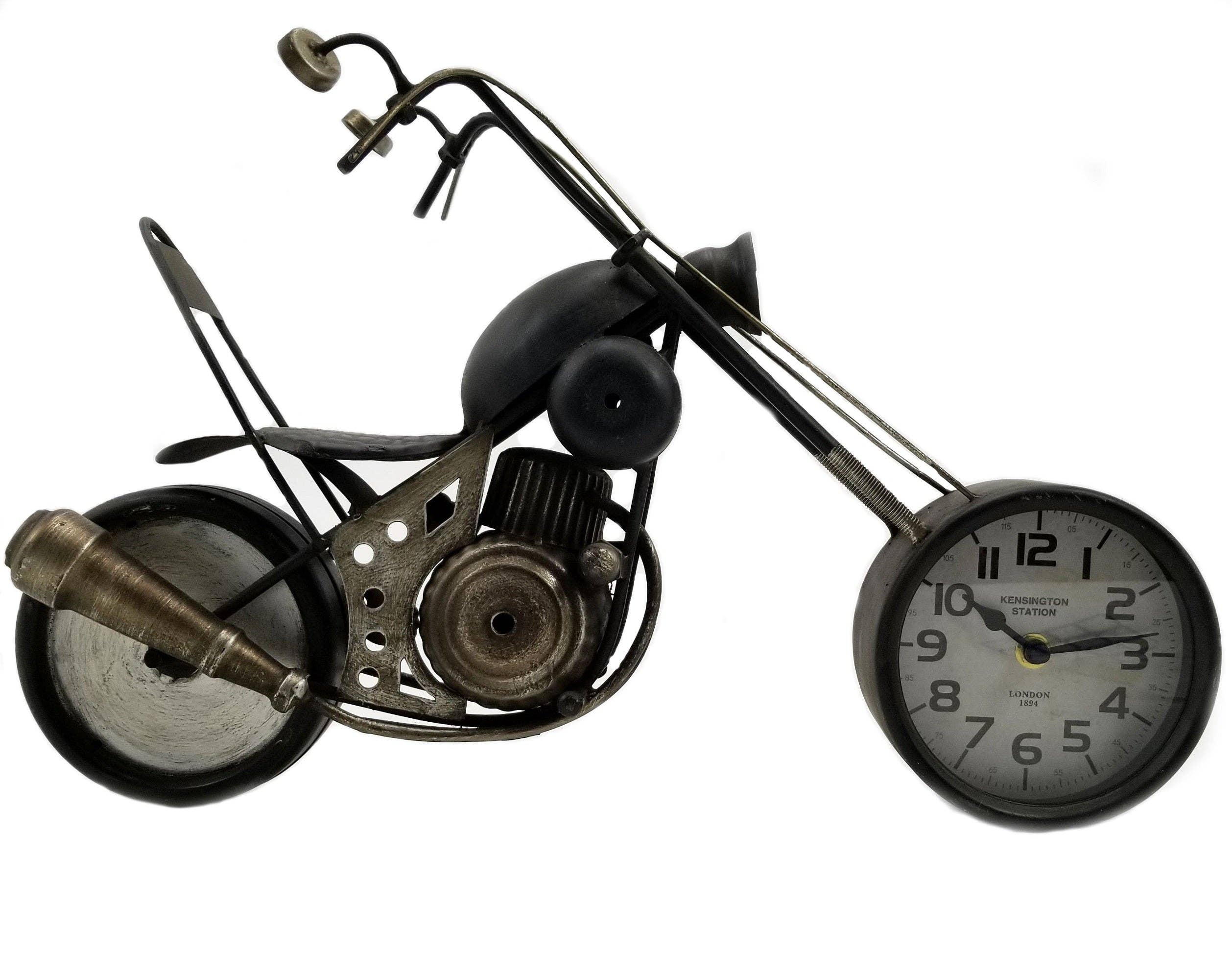 Table clock, Rustic Vintage Airplane Table Clock Size/Weight: W 16.5" / D 8" / H 10" / 1.5lb. Set Sail with the Ship Wheel Table Clock Embrace the spirit of the sea with our Ship Wheel Table Clock. This handcrafted piece brings the essence of nautical adventures into your home, perfect for anyone who dreams of steering their own ship. The intricate details and authentic design make it a stunning addition to any room. Product Features: Nautical Ship Wheel Design: Inspired by the helm of a ship, this clock features a wheel design that captures the romance of the open ocean. It’s meticulously crafted to resemble the real thing, offering not just functionality but a piece of maritime art. Compact and Versatile: Measuring 11 inches in length and 7 inches high, this clock fits neatly on any table, shelf, or mantel, making it a flexible addition to your decor. Handcrafted Quality: Each clock is handcrafted from high-quality materials, ensuring durability and a unique character that no mass-produced item can replicate. Vivid Imagery: The clock face features classic nautical imagery, enhancing its authentic look and feel. Perfect for Maritime Enthusiasts: Ideal for those who love the sea or have a nautical-themed decor. It’s a subtle yet striking piece that evokes the leadership and adventure associated with being at the helm of a ship. A Timeless Gift: A thoughtful and charming gift for anyone who appreciates maritime history or enjoys nautical decor. This clock is sure to become a treasured item in any collection. Navigate Your Day with Style: With the Ship Wheel Table Clock, every glance at the time is a reminder of the vast seas and the adventures that await. It’s more than a timekeeper—it’s a portal to the waves and beyond.