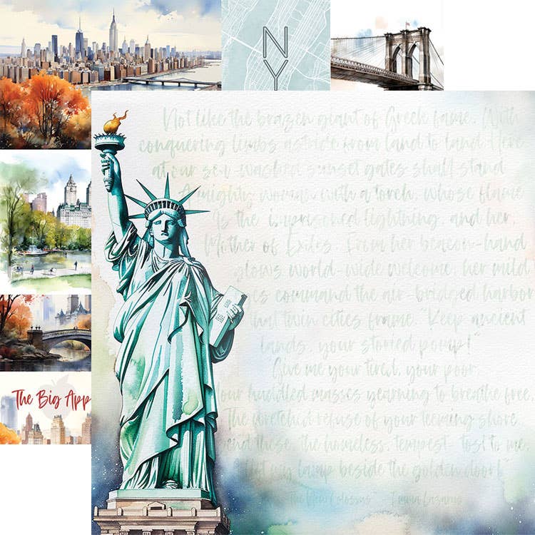 "New York, New York, it's a wonderful town…" This scrapbook paper shows a colorful watercolor depiction of the city skyline. Makes you want to hop on a train or a plane and visit right now! This 12"x12" double-sided paper is perfect for scrapbooking your favorite memories, card-making, and other paper-crafting projects. Double-sided lignin-free heavyweight cardstock.