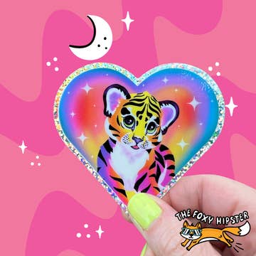Wholesale Feral 90s Winking Sassy Cat Holographic Glitter Sticker