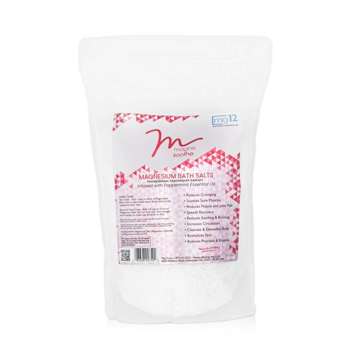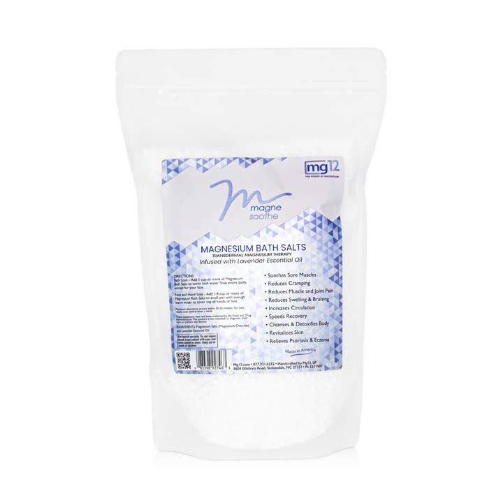 Unlock the benefits of MagneSoothe Magnesium Bath Salts! Infused with the healing power of magnesium, this product is a must-have for everyone's well-being journey. Our bath salts are a natural remedy, soothing sore joints, easing muscle cramps, and eliminating the day's stress to help you relax at the end of the day. It's not just a luxury; it's a necessity! Simply dissolve of 1-2 cups of MagneSoothe Bath Salts into your normal bath. With just a brief 15-20 minute soak, you can enjoy all of the natural healing benefits of magnesium, along with other topically absorbed natural botanicals. Made with pure Magnesium Salt (Magnesium Chloride) and enriched with natural botanicals and essential oils, this product embodies the essence of holistic living. It's a holistic skin therapy that every individual deserves. Ingredients: Magnesium Salts (Magnesium Chloride)