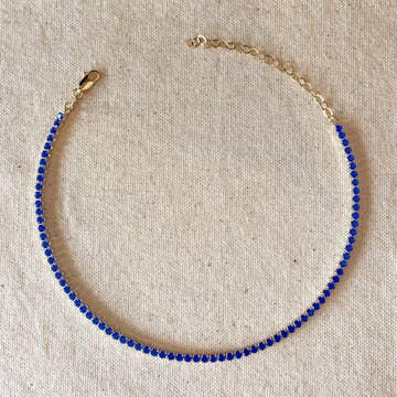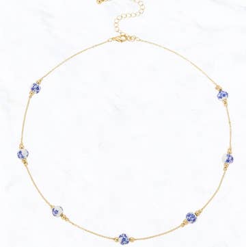 Tiny faceted sodalite beaded choker with 5 gold-fill pave cz diamond shape drops. As seen on bachelorette hannah. 13″ long with 2 inch chain extension.