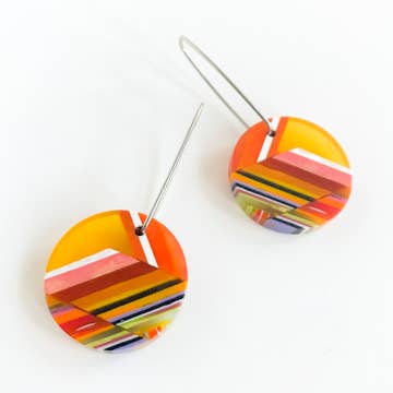 Lightweight hand polished brass and sustainable wood pulp acetate earrings with stainless steel posts. 2-1/4 x 1 inches. desert earrings southwestern jewelry sun earrings sunset earrings statement earrings whimsical earrings acrylic earrings resin earrings