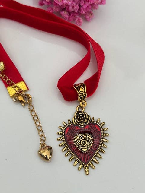 Wholesale Heart choker, green-gold heart necklace, ex-voto charm, choker gift for mom, gift for wife/loved one, handmade choker